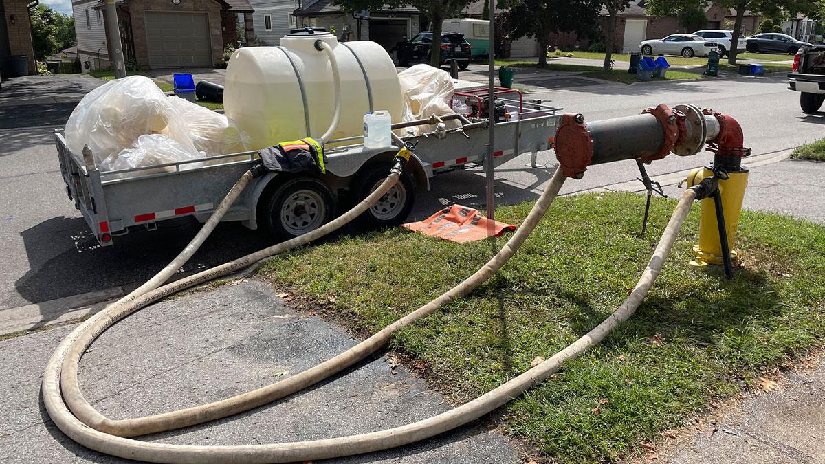 Typically, households should not experience water discolouration during watermain flushing, however this can sometimes occur. If you notice your water is discoloured, please run the cold water tap on your laundry tub or bath tub for approximately 5–10 minutes to clear any discolouration. If the water is still discoloured after this time, please contact Water Operations: 705-792-7920 or WaterOperations@barrie.ca. After-hours, please call 705-726-4242 and press zero for assistance; appropriate on-call staff may assist you.
