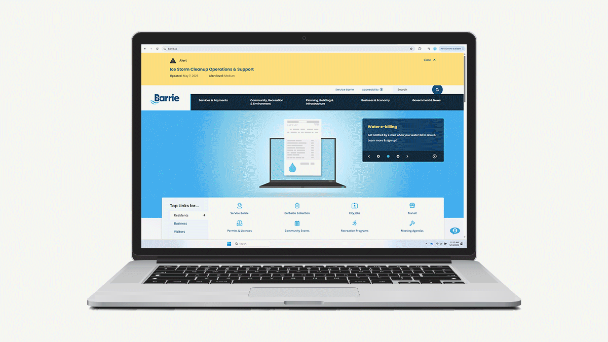 The City introduced an AI-powered chatbot on Barrie.ca on May 28, 2025, as a pilot project. Designed to transform customer support for the City of Barrie, this tool navigates and interprets the City’s website content and provides instant answers to questions. Whether users seek details about City services, upcoming events, or local regulations, the chatbot is available to assist 24/7.