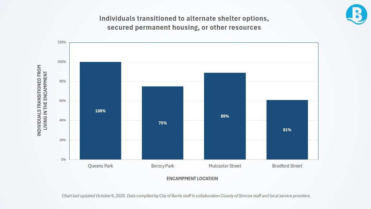 Much like other Canadian municipalities, Barrie has seen an increase in homeless encampments throughout the city. These encampments pose safety risks for both those living in tents and the families, seniors and businesses who live, work and play in Barrie. The City of Barrie is committed to ensuring safe, welcoming public spaces while supporting vulnerable residents through coordinated services provided by the County of Simcoe. This page provides real-time updates and insights into how the City is addressing homelessness and encampments alongside our community partners.