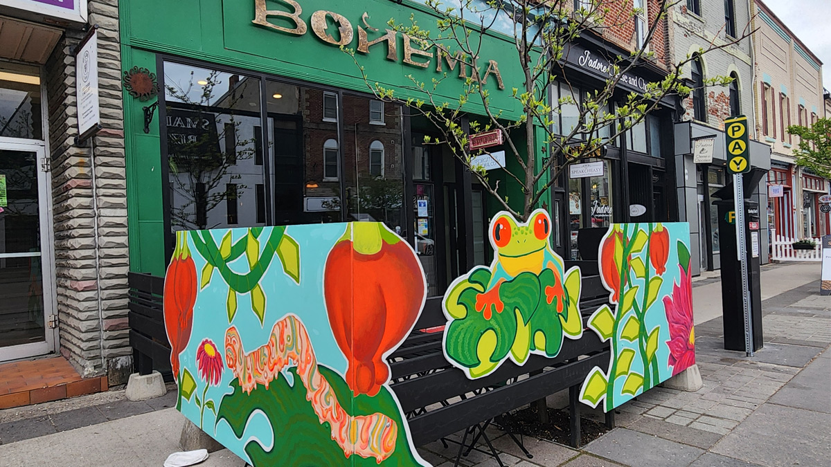 Each summer from 2021–2025, restaurant patios in Barrie's downtown had temporary art installations displayed on their patio fencing. Residents and visitors could explore downtown Barrie and support local businesses while appreciating the original works. For information about past exhibits, download the guides: