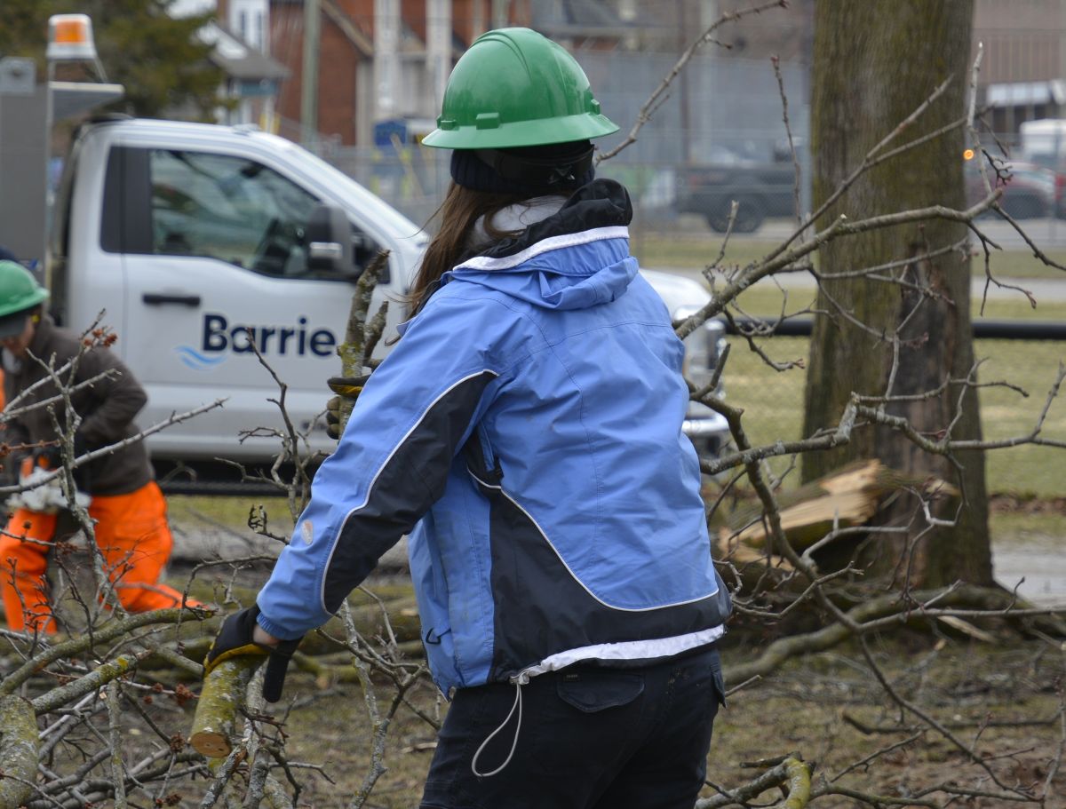 City staff, with the assistance of other municipalities in Ontario and external contractors, continue to clean up any brush that is piled at the curb. As of April 25, crews have been able to make a first pass of 98 per cent of the city to collect debris at the curb. Crews will be making multiple passes across Barrie until everything is cleaned up.