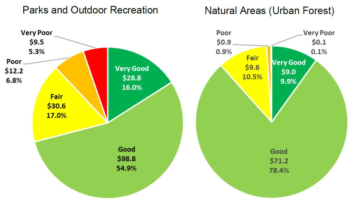 Overall, the parks, outdoor recreation, & natural asset asset replacement value is approximately $313M and assets are in good condition.