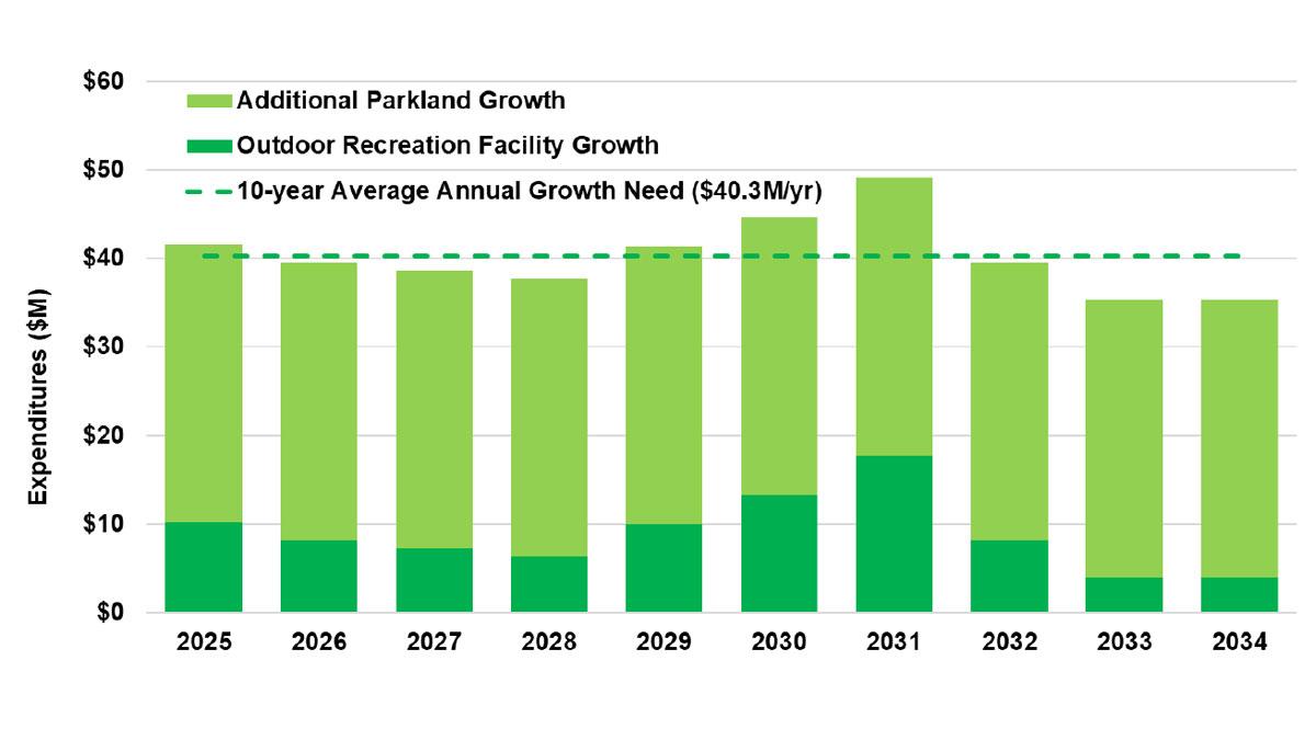 - There is a significant investment gap related to new baseball diamonds, soccer fields, and overall parkland to serve the City’s growing population. The Parks Strategic Plan will update service levels and identify the programming and upgrade needed to address this gap.