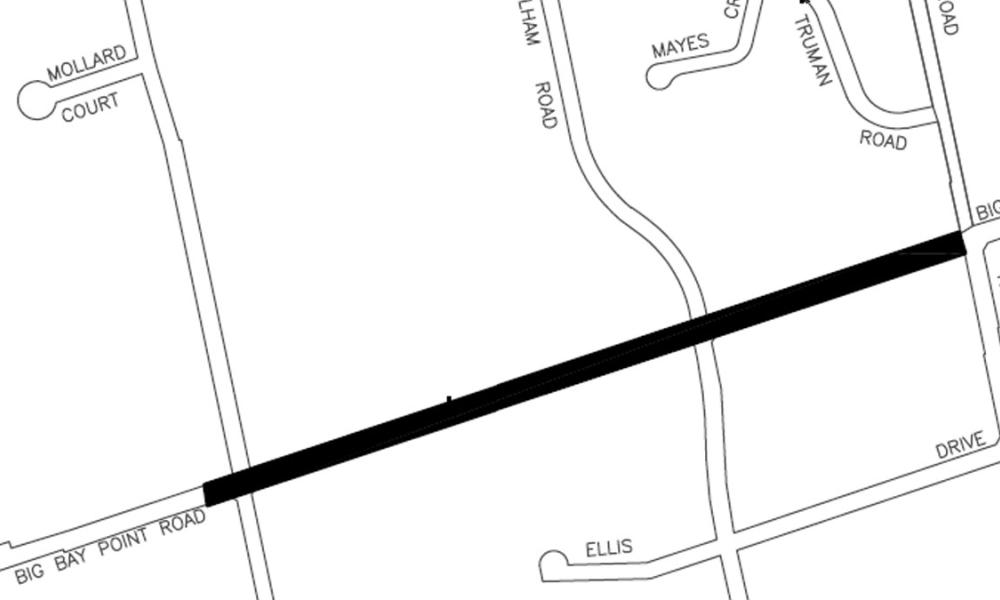 Completed in October 2025. Lining of an existing 500mm diameter concrete pressure pipe watermain on Big Bay Point Road between Bayview Drive and Huronia Road.